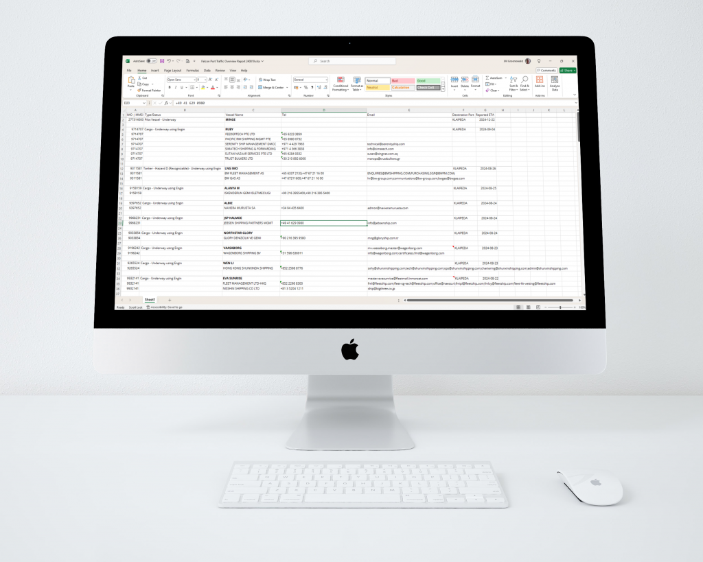 What if someone could just give you a list with all the vessels on, with their email addresses, so you can just send out your emails and be done for the day? This is the Falcon Port Traffic Overview Report.